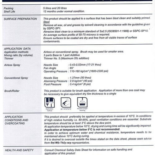 - Tỷ lệ pha sơn: 3.75 litres A : 1.25 litres B